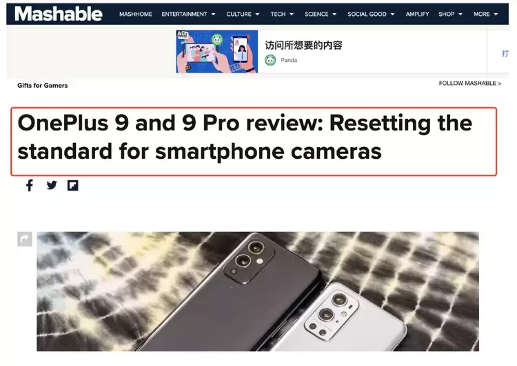 Mashable作为国外知名的科技媒体,给予了一加 9 系列极高的评价,誉为“重新定义智能手机的相机标准”。国外顶级科技媒体PhoneArena也表示:一加 9 Pro是近期最好的安卓手机。