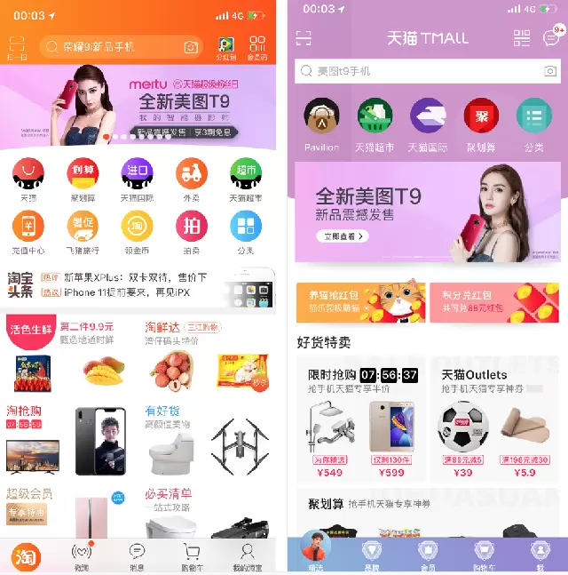 对于一般的促销打折营销形式,天猫超级粉丝日突破了以往整合同类型品牌造节的大促形式,针对单个品牌在特定时间内整合双方资源,通过品牌营销、沉淀用户,进而带动销量增长。这一次,针对美图手机的新品美图T9,天猫超级粉丝日在资源上给予了极大支持,比如在淘宝、天猫电脑端与移动端首页都给了专场广告banner、超级粉丝日会场页面展示,以及天猫手机联合芝麻信用针对美图T9推出好信用“先享后付”的全新购机模式,芝麻信用分750分及以上的用户购机可试用长达30天,满意后再付款。