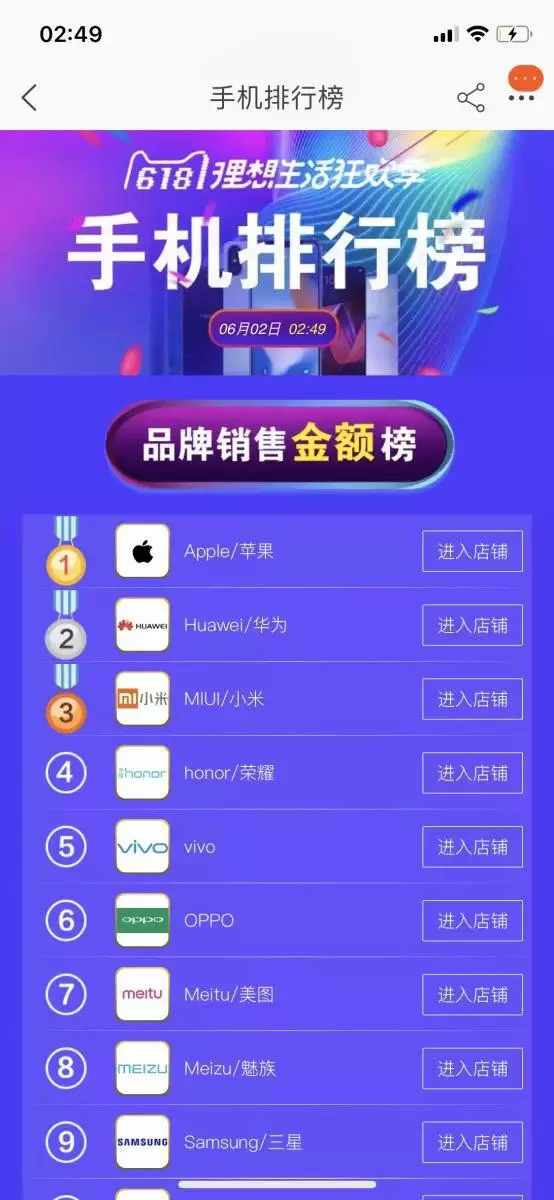 美图T9拿下天猫618手机品牌销售金额榜第七名