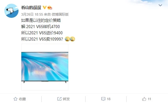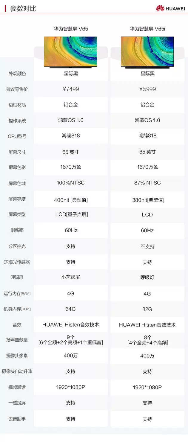 华为新款65英寸智慧屏曝光 内置帝瓦雷 支持120Hz刷新率