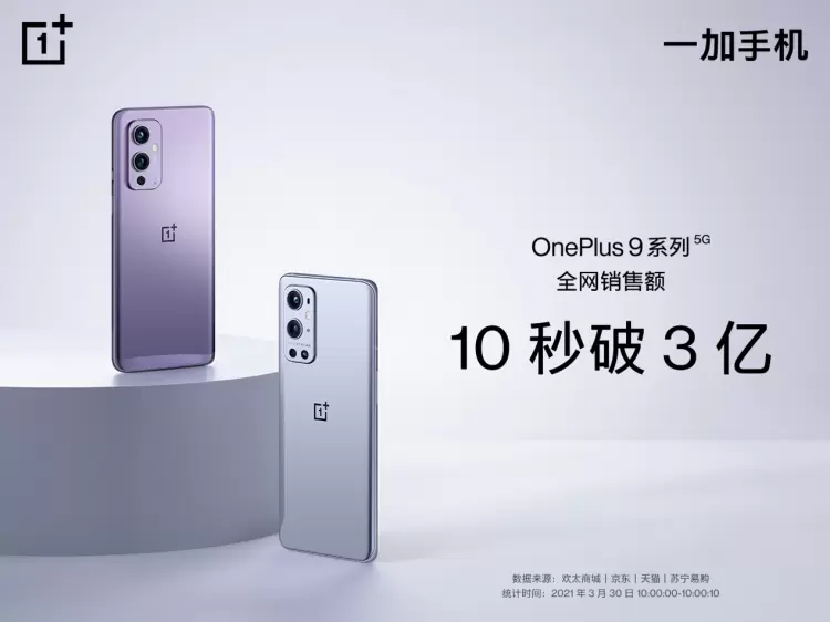 3月30日上午10点,影像机皇一加9系列开启首销,开售后仅10秒全网销售额破3亿,战绩火爆!