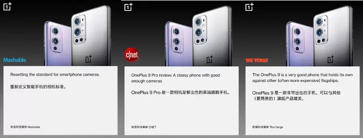 销量走高的背后是市场对一加9系列产品实力的认可。一加9系列发布后,收获了国外多家科技媒体的高度评价。知名科技媒体Mashable评价:重新定义智能手机的相机标准;CNET则指出:OnePlus 9 Pro是一款相机足够出色的高端旗舰手机;权威科技媒体 The Verge更是直接称OnePlus 9 是一款非常出色的手机,可以与其他(更昂贵)旗舰产品媲美。