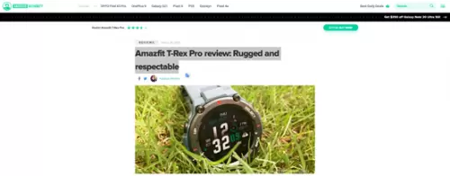 国外权威评测机构「AndroidAuthority」直接在标题中称赞了 Amazfit T-Rex Pro 的外观设计,表示这款来自中国的户外智能手表非常坚固耐用且值得尊敬。这和 Amazfit T-Rex Pro 的强韧性能有着密切关系,手表不仅沿用了硬朗户外的风格设计,更在表身细节和内部结构都采用了强化设计。同时,出于对手表整体耐用性能的追求,Amazfit T-Rex Pro 还通过了 15 项军规标准认证,无论是沙漠雨林,还是雪山深海,都可提供坚韧表现。