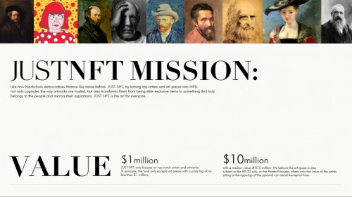 孙宇晨告诉记者:“JUST NFT基金的使命就是全球顶级艺术品的NFT化与区块链化,我们要成为NFT领域ARK方舟明星基金。JUST NFT将搭建全球顶级艺术家与区块链的桥梁,支持加密世界原生NFT艺术家的成长。”