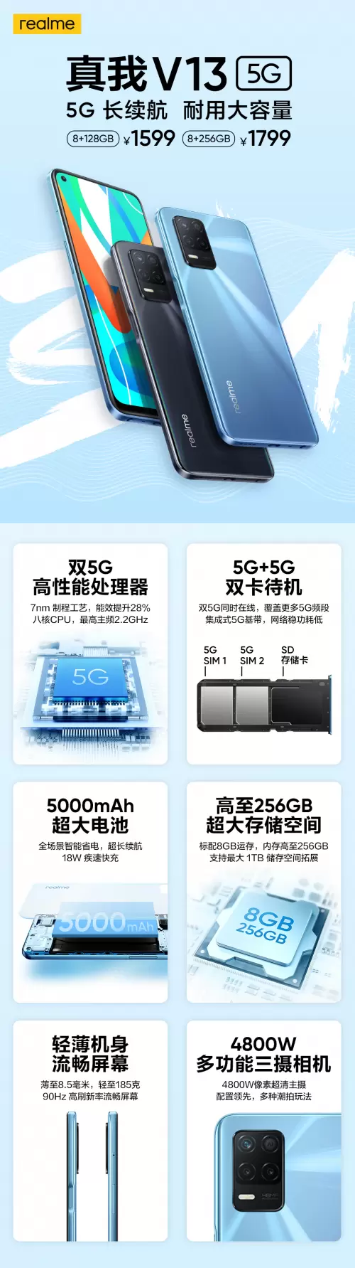 大容量长续航5G手机,realme 真我V13正式发布,售价1599起