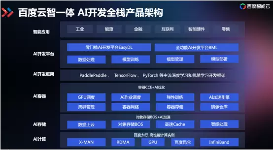 百度智能云主要通过AI计算、AI存储、AI容器三层构建AI开发基础设施。具体来看: