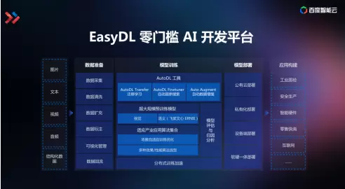 EasyDL和BML都可以满足开发者数据获取、特征提取、参数调优、模型训练、模型评估、模型部署、推理服务等全流程需求,更具备丰富的任务场景、便捷高效的智能数据服务EasyData、内置百度超大规模预训练模型所带来的高精度效果、支持广泛适配各类硬件的模型部署四大核心优势。