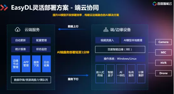 端云协同部署基于百度开源的智能边缘BIE框架搭建,开发者可以轻松在云端管理各类端与边缘。