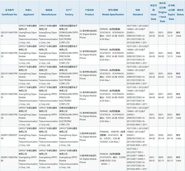 日前,OPPO多款新机通过3C认证,型号为PEXM00、PEPM00、PDEM30等,全部支持65W有线快充。