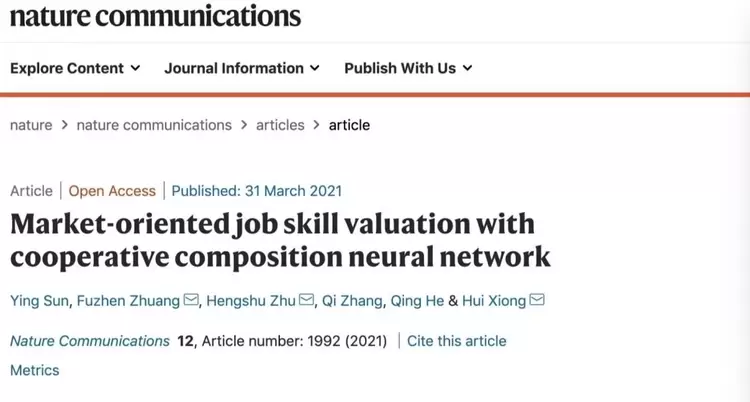 AI的高速发展启动了人才管理变革的加速器。近日,百度针对“AI+人才管理”领域的最新研究成果登上国际顶级刊物Nature子刊Nature Communications(《自然·通讯》),论文题为《Market-oriented Job Skill Valuation with Cooperative Composition Neural Network》。该研究首次使用数据驱动的方法,通过机器学习技术,探索了薪资与工作技能价值评估关系的重要问题,对于社会劳动价值分配机制的合理性和公平性设计、社会劳动力保障、智能招聘和精准就业、个性化职业教育等多个领域均有重要价值和影响。