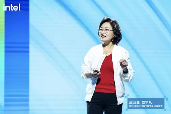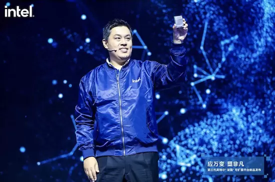 英特尔公司市场营销集团副总裁兼中国区数据中心销售总经理陈葆立展示第三代英特尔至强可扩展处理器