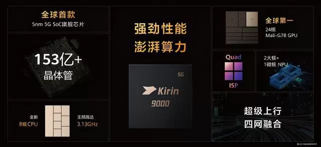 GHz;GPU首发24核Mali-G78 GPU集群,是华为手机芯片GPU之最;全新一代的NPU拥有创新双大核 + 微核 NPU