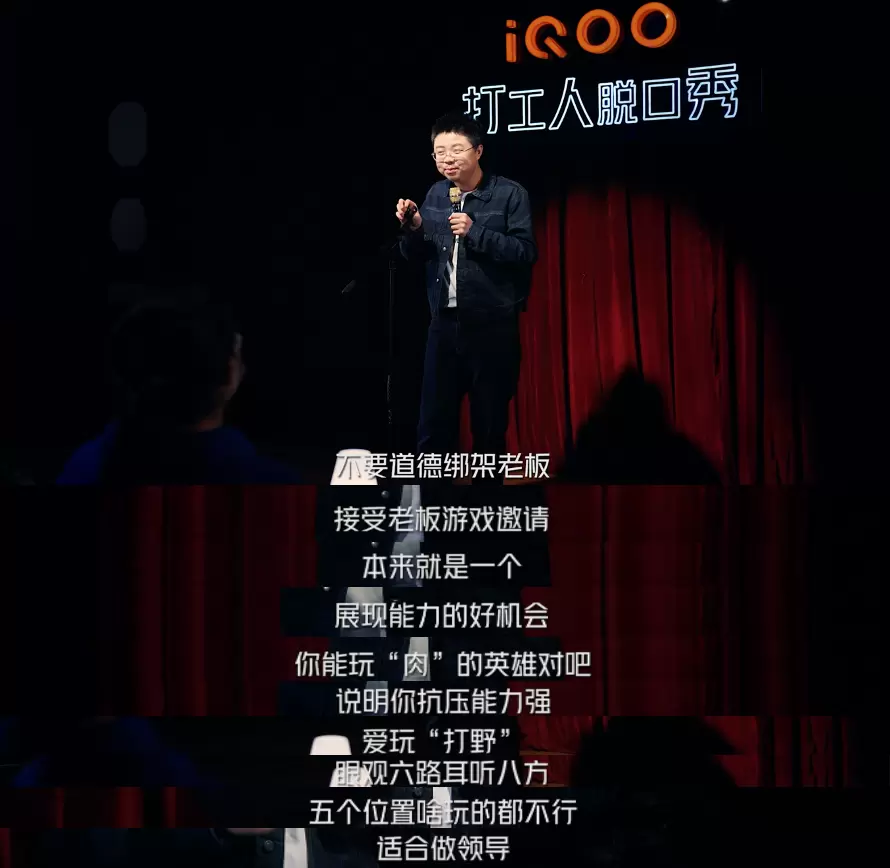 Z世代已经陆续步入职场,这一代年轻人作为互联网原住民,更有自我意识,比起权威,更重视自我成长和成就。虽然职场艰难,但谁不是一边丧,一边拼命呢?就像打工人脱口秀传递出的态度,笑对工作,笑对生活,在生活的命题前,归根结底“你才是甲方”。iQOO这场脱口秀另辟蹊径,选择年轻人喜欢的议题,借助游戏视角解读职场难题,直戳打工人内心,感兴趣可以去@iQOO手机官方微博看看。
