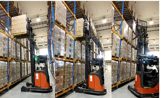 未来机器人前移式无人叉车-VNR系列,主要应用于室内货物上下架、室内货物堆叠场景,VNR无人叉车最大举升高度可达8.2m,于2019年正式进驻项目现场,创造了在3m窄通道内实现8m高位货物上下架的记录,满足更多场景需求。