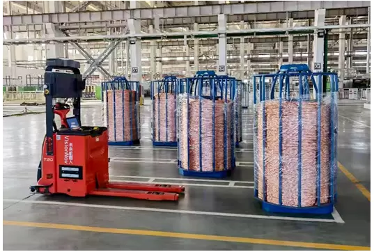 未来机器人无人叉车在国内家电制造龙头企业的应用案例,使用窄体托盘堆高式无人叉车以及托盘搬运式无人叉车,自适应线篮、带轮仓储笼等载具,实现漆包线的无人化搬运,无人叉车24小时作业替代2班倒的人工作业方式,为用户节省了至少12名操作人员。
