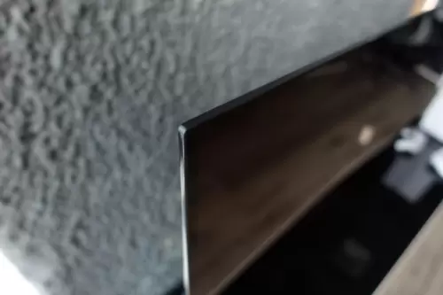 据实际测量,A90J的屏幕最薄的部分,厚度仅为5.3mm,可谓是把轻薄一词诠释到了极致。这样的厚度让其在使用支架摆在电视柜上时,侧面颜值拉高;直接挂墙能和墙壁之间尽量贴合,相当美观。