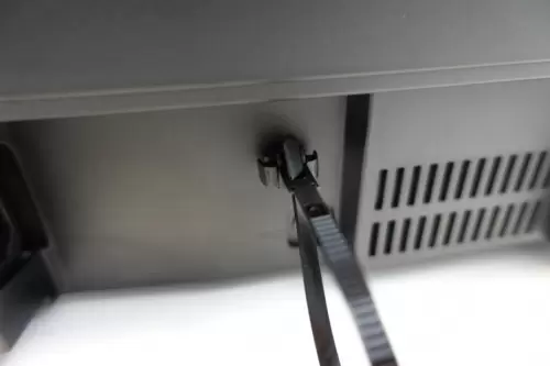而将背板打开,还可以看到索尼还贴心地加入了线缆收集的区域,在插入接口后,可以将线缆用扎带捆绑,方便大家打理线材。而本部分在盖上盖板后则会被完美隐藏,让电视附近更美观整洁。