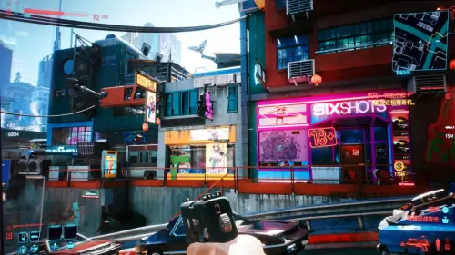 我们还试玩了《赛博朋克2077》,在科幻世界观下,霓虹灯闪烁在大街小巷,各色广告招牌遍布墙壁,因此在场景中会出现很多主色调比较鲜艳的内容。从屏摄图我们也能看出,A90对于颜色的把控相当到位,颜色鲜艳却不或过于艳丽,恰到好处地烘托出其世界观下的奇异环境。