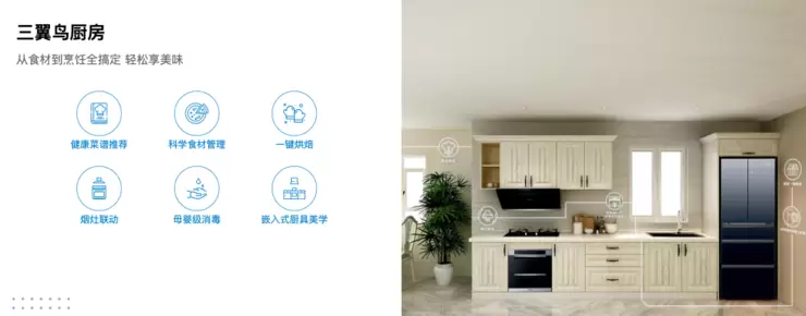 据官方公开信息显示,目前,三翼鸟场景品牌提供包括三翼鸟浴室、三翼鸟客厅、三翼鸟厨房、三翼鸟影音等覆盖衣、食、住、娱全场景的智慧解决方案。