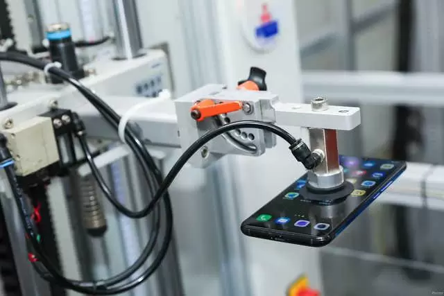 就拿一个充电口抗腐蚀性标准来说,常规做法标准单一程序简单。而vivo的高标准则要求在高频6000次插拔试验中加入充电口滴入汗液条件,且不允许有充电失效,这就是严苛的质量标准。又比如说在人体坐压环境测试中,自动化设备将30KG的重力对手机做1000次施压;经过这些“严刑”后,在200倍(极端测试2000倍)显微镜下审视主板和芯片没有裂纹才可以通过等等高测试标准。