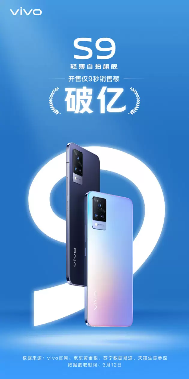 在竞争激烈的手机市场中,#vivo S9#是少见的自开售起火爆全网的机型。根据vivo官微发布的销量战报,vivo S9开售仅9秒就实现了销售额破亿,在中国移动、中国电信、国美零售等六个销售渠道中,该机还获得了2500~3500价位段的销量、销售额双冠军,可见其受欢迎程度之高。