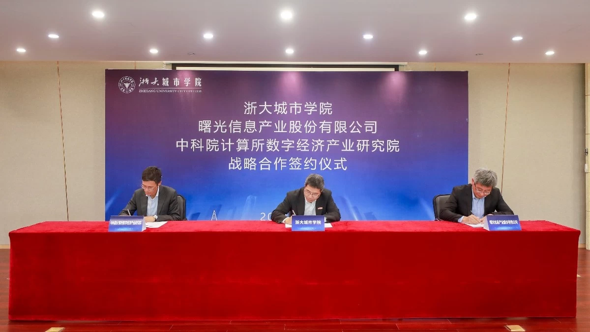 4月13日,浙大城市学院、中科曙光和中科院计算所数字产业研究院在杭州共同签署战略合作协议,全面推行校企协同育人和科研创新,揭牌共同成立“浙大城市学院—中科曙光现代产业学院”。