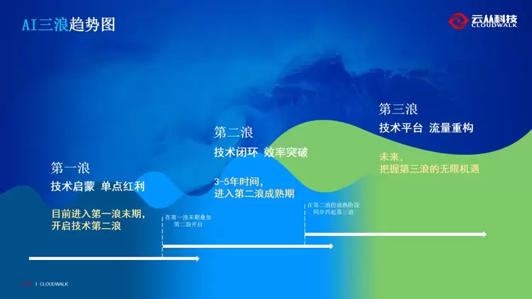 在此阶段,云从科技提供综合了听说读写等感知能力的全链人工智能技术,基于多项技术构建全面解决方案。例如,云从的智慧网点解决方案,综合视觉、语音、自然语言处理等多项技术,应用于智慧迎宾、用户身份核验、AI双录等多个场景。目前云从已携手多家银行落地方案,共同为用户带来流畅、完整的智能体验。