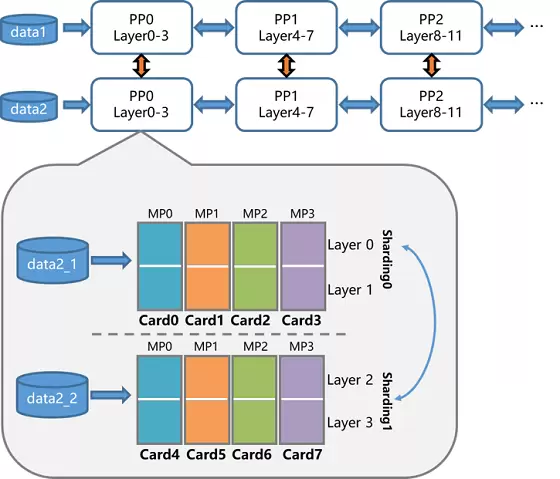 图 12 dp_degree=2 & sharding_degree=8 的 Sharding-DP 示意图