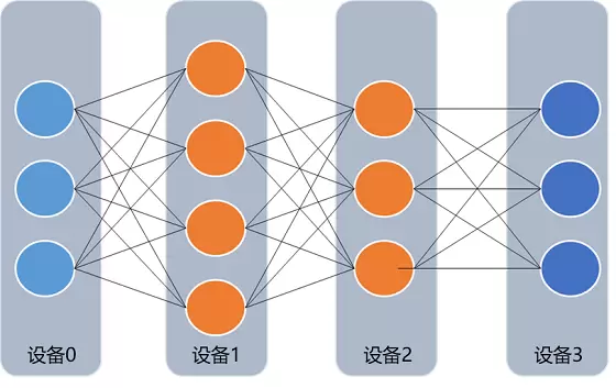流水线并行策略支持将模型的不同层放置到不同的设备上,通过多个设备来共同分担显存消耗,实现超大规模模型训练。相邻设备间通过通信链路传输数据。由于各个设备间传输的仅是相邻设备间的输出张量,因此通信量较小,相对来说较为适合机器间通信的场景。