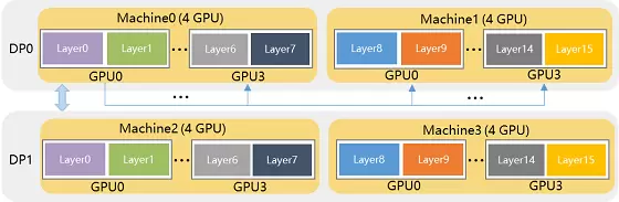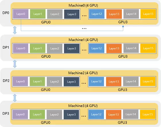 图 11 dp_degree=4 & sharding_degree=4 的 Sharding-DP 示意图