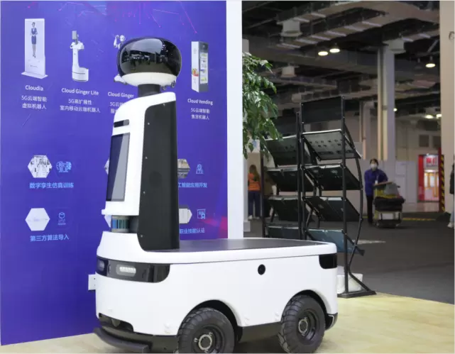 参与亮相的5G云端智能机器人包括:5G云端服务机器人Cloud Ginger 、5G云端高扩展性室内移动机器人Cloud Ginger Lite、5G云端多功能航母平台安保安保错别字替换为安保忽略递送机器人Cloud Patrol、5G云端虚拟智能机器人Cloudia,和5G云端售货机器人Cloud Vending。