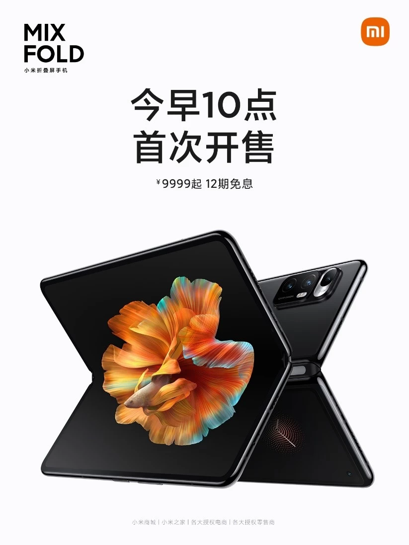 4月16日,小米旗下首款折叠屏高端旗舰MIX FOLD正式开卖,12GB+256GB售价9999元,12GB+512GB售价10999元,支持12期免息。即日起,大家可以通过小米商城,小米之家、各大授权电商平台以及授权零售商等渠道购买。