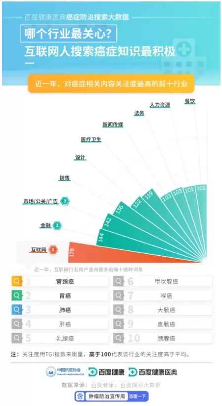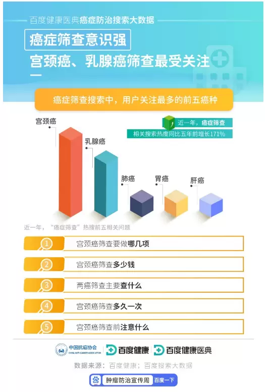 - 百度健康医典癌症防治搜索大数据发布:癌症筛查持续升温,女性“两癌”是关注重点