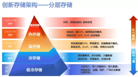 “总结来说就是用户既需要大容量、也需要快速访问、又需要低成本、还需要低功耗。其实你很难找到一个存储介质能够同时满足这四个方面用户需求。然而好消息是,当你创新存储架构的时候,你有可能作为系统来满足用户各方面、各种存储场景的需求。因为用户的数据是要进行分层的,用户数据也是有不同的类型,它对存储的要求也是不同的。”刘钢说到。