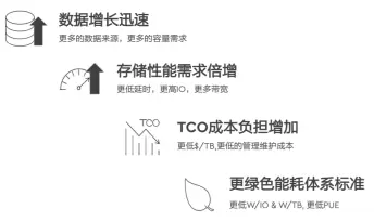 随着数据的爆炸式增长以及存储需求发生巨变,数据存储逐渐面临着前所未有的压力。现今,我们可以看到数据存储面临这几个方面的挑战。
