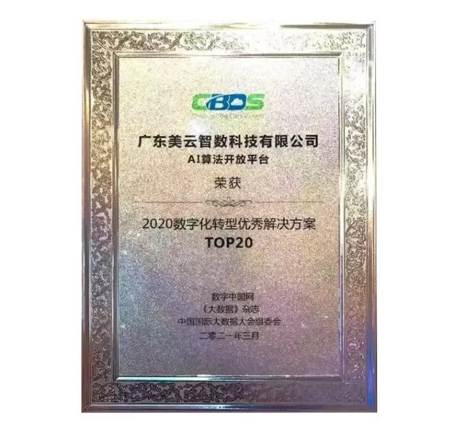 美云智数AI算法开放平台荣获“数字化转型优秀解决方案”