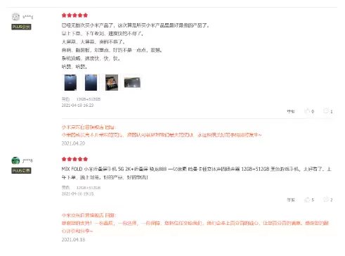 4月16日,小米首款折叠屏手机MIX FOLD首次开抢。作为小米上半年主打的高端旗舰之一,小米折叠屏MIX FOLD的多个参数表现都非常亮眼,整体实力相信还是颇为全面且强悍的。于是笔者特意去看了一下首批用户评价,拿京东单个平台来说,好评率为95%,还是比较高的,不妨看几个评论。