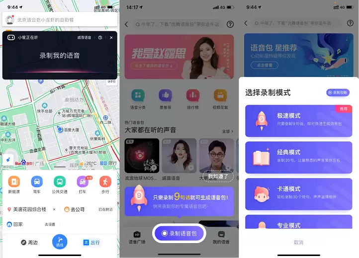 随着语音技术不断的更新迭代与交互场景的智能化升级,人们在享受新兴技术服务的同时,也对日常生活的便捷性与经济性提出了更高的要求。从打造明星语音包到实现每一位用户的“私人定制”,依托百度领先的AI技术,百度地图不断锤炼智能语音在地图场景的应用,持续为数亿用户提供更贴心的出行服务。近日,百度地图语音定制产品再度升级,用户仅需录制9句话,便能生成一套完整的个人语音包,并在地图全场景进行使用。