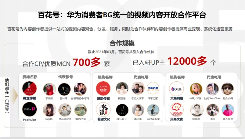 华为视频发布百花号MCN激励计划:一年内投1000万现金奖励创作者