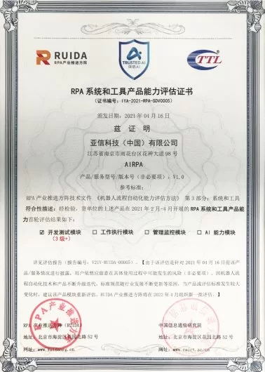 亚信科技AISWare AIRPA机器人流程自动化平台通过信通院全国首批最高级能力评估