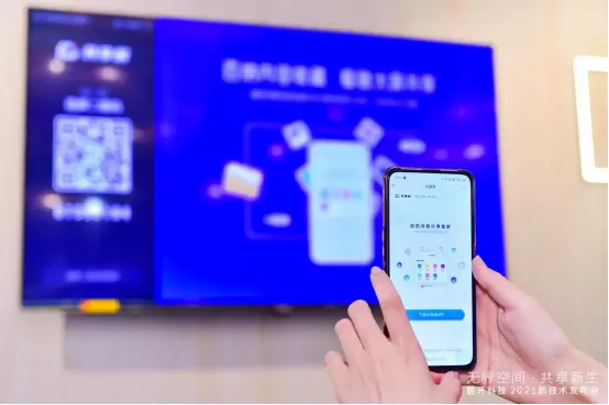 王志国还表示,共享屏还有一个优势就是多样化的连接方式。只需要简单的扫码,便可以实现手机端、笔记本端与大屏的互联,免除了繁琐的插线过程。除了扫码连接之外,共享屏还支持NFC连接,只需设备简单触碰,便可实现屏幕间的连接。