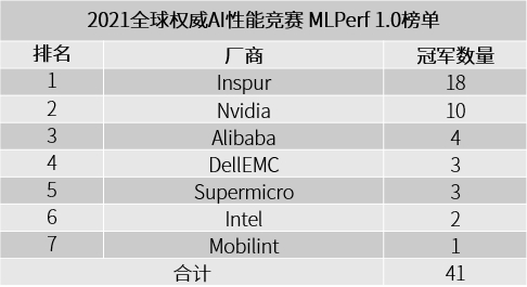 2021全球权威AI性能竞赛MLPerf最新榜单: 浪潮获18项冠军几近半壁江山