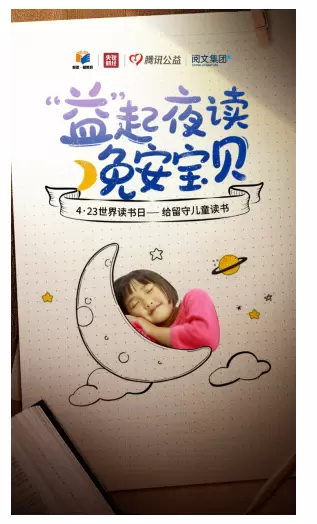 4月23日,央视财经、阅文集团、腾讯公益共同发起《“益”起夜读,晚安宝贝》活动。陈伟鸿、姚雪松等央视财经9位主持人与阅文集团旗下白金作家爱潜水的乌贼、会说话的肘子、一路烦花和吱吱共同参与录制夜读故事,陪伴乡村留守儿童温暖入眠。