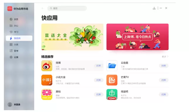 快应用即点即用、服务直达的优势,使得快应用天然适用于多终端场景。2021年1月华为正式上线PC版快应用,用户可以直接打开并使用影音娱乐、社交通讯、新闻阅读等多种品类的快应用。截止目前,华为快应用已支持手机、平板、PC、TV、车机等多终端智能设备。