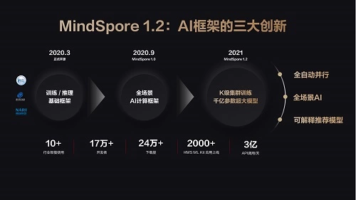 国内首个支持千亿参数大模型训练AI计算框架MindSpore 1.2发布