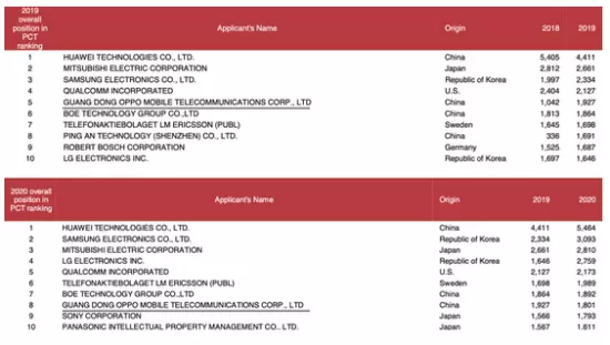 在中国企业乃至全球企业中,OPPO无疑成为了技术创新和知识产权的“高产大户”。根据国家知识产权局公布的2020年中国发明授权专利数量,OPPO以3578件位列全球企业申请人第2位。另据世界知识产权组织(WIPO)数据显示,OPPO已连续在2019、2020两年跻身国际专利条约(PCT)申请数量排行榜前十。