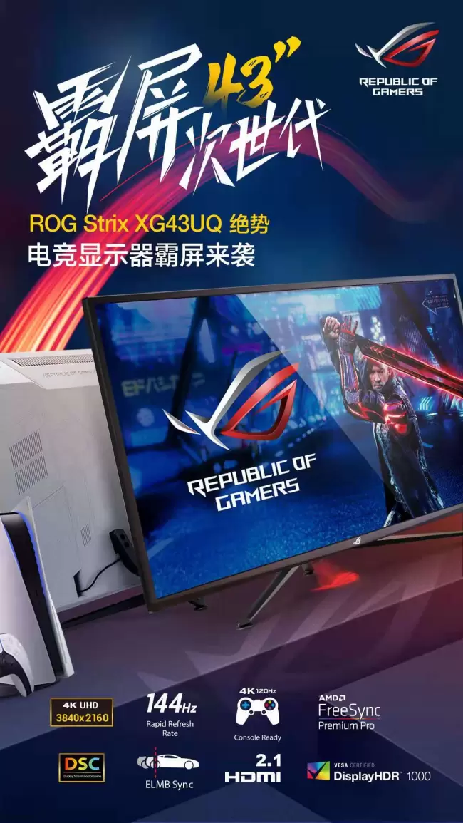电竞次世代来袭,ROG XG43UQ电竞显示器登场,尽享4K+144Hz
