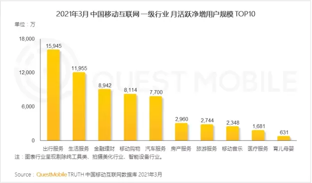 4月27日,国内权威第三方数据机构QuestMobile发布《2021中国移动互联网春季大报告》(以下简称《春季大报告》),全面盘点2021年Q1的发展和特征。QuestMobile数据显示,虽然2021年Q1经济和消费均大幅提升,不过,移动互联网用户变化不大,截止到2021年3月,用户数量11.62亿,仅比2020年规模低谷期9月份增加了822万。