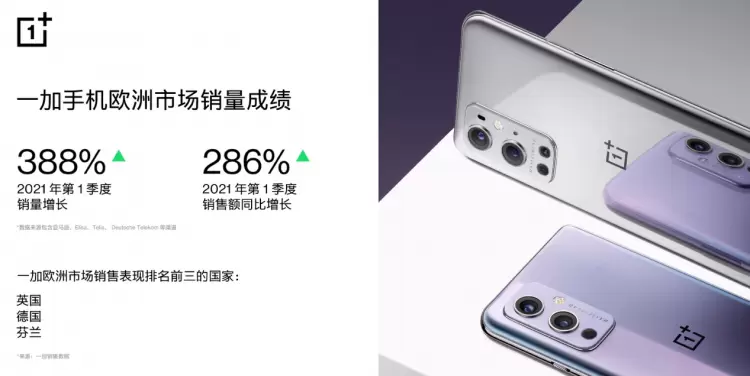 一加公布2021年Q1欧洲销量数据:销量增长388%