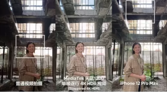 相较于传统的HDR技术,天玑1200的Staggered HDR 4K视频技术通过实时的3次曝光融合处理,让录制的画面实现最佳色彩、对比度、细节等,同时有效降低运动拖影,提升视频的动态范围,实现电影般的4K HDR视频拍摄效果。